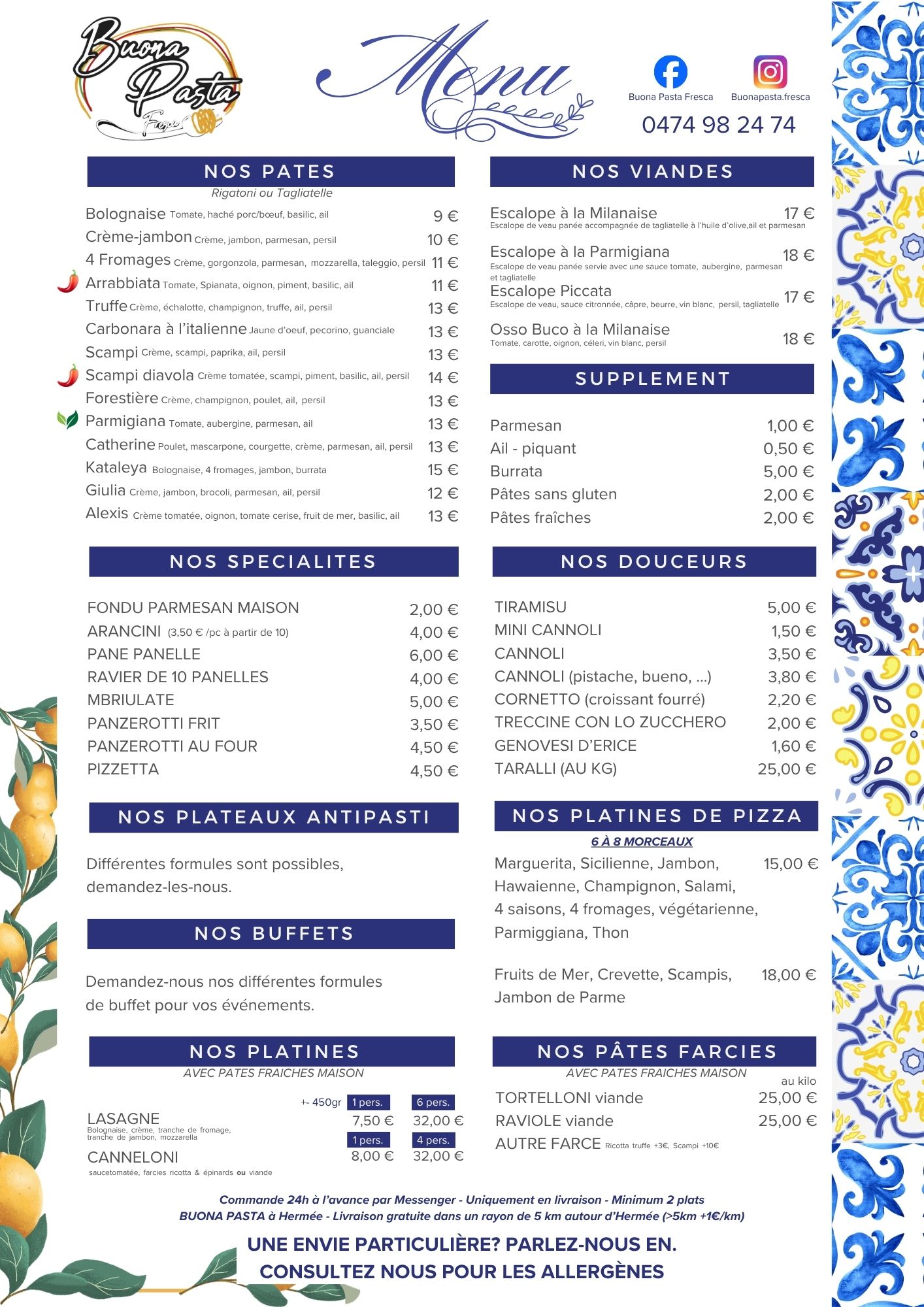 Samedi : 18h-22h (Sur commande)